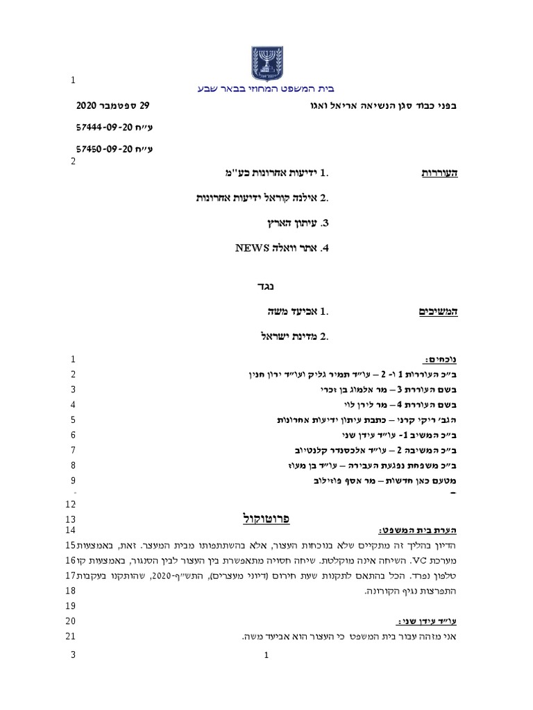 פרוטוקול הדיון בבית המשפט על התרת פרסום שמו של אביעד משה החשוד בניסיון רצח אשתו Pdf